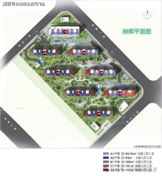【大名城·映玥】此次推出主力户型为建面约84-96㎡(3房)的洋房,1梯2户私密设计,容积率低至约1.2,建筑密度约21.65%,车位配比1:1.1。