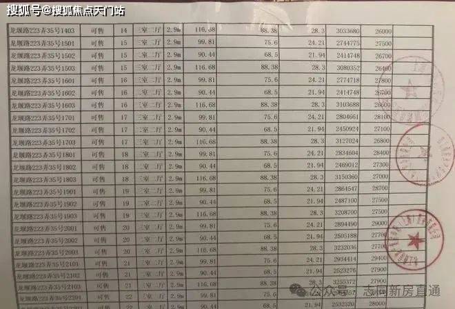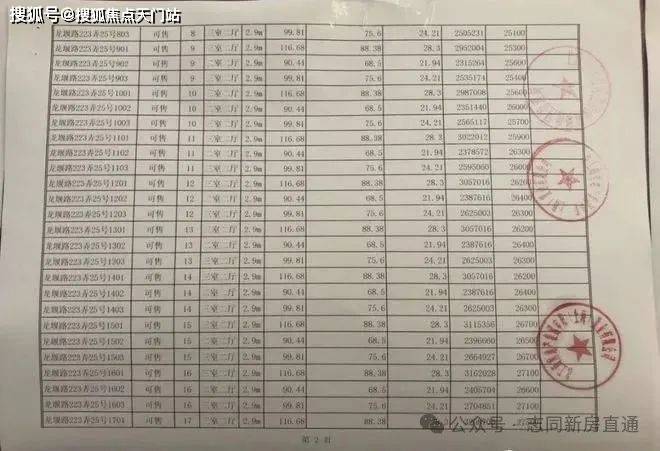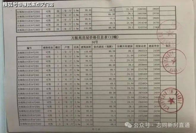 项目一房一价表