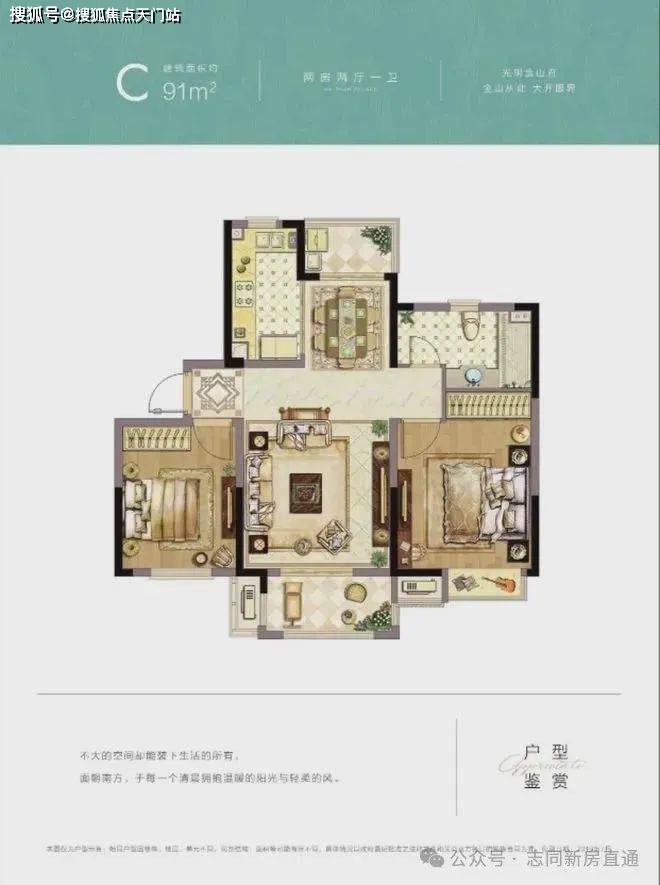 2房2厅1卫 91㎡ 户型图