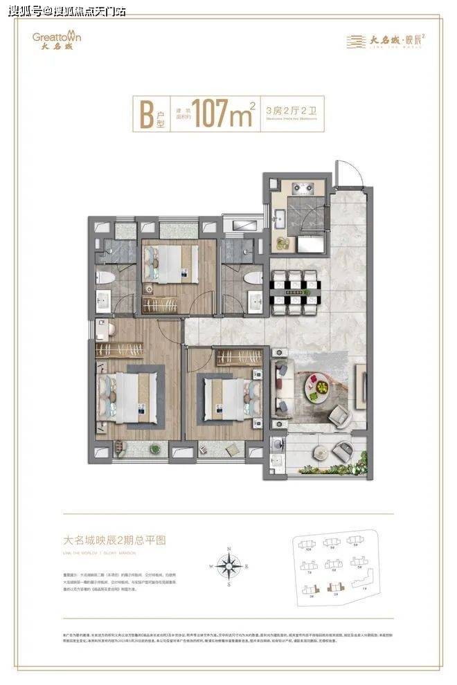 看产品力,二期临河而居,升华居住体验!主推约100㎡3房符合一步到位置业需求!