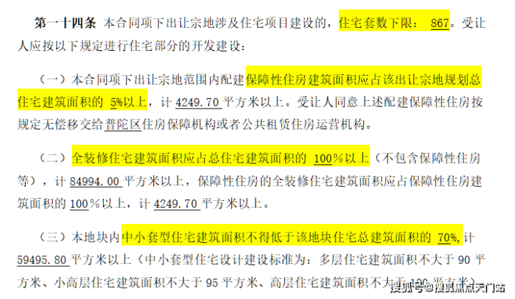 地块用地性质为普通商品房,容积率约2.5,限高80米,住宅套数下限867套,需配建5%以上保障性住房,中小套户型不得低于70%,全装修比例100%!