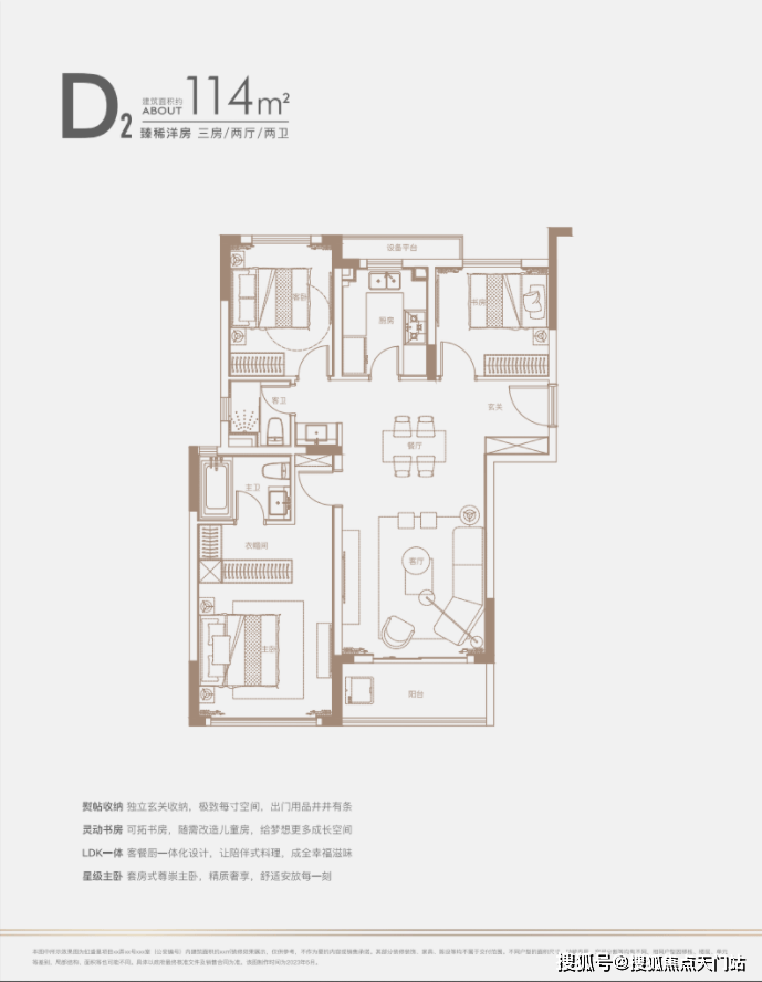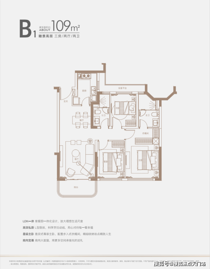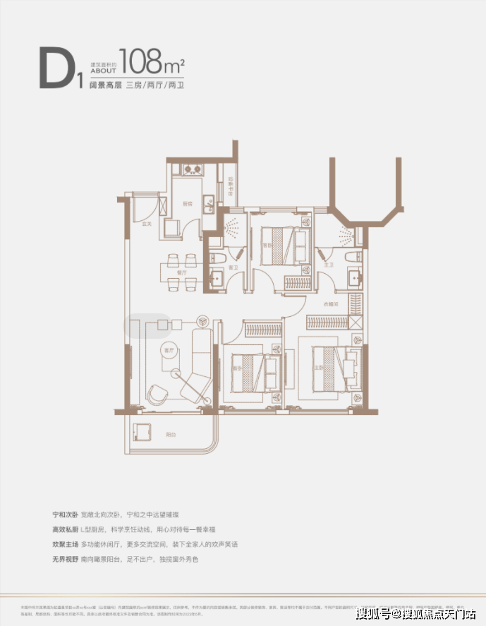 建面约140㎡四房:三开间朝南户型,南北通透,采光条件优质,客厅明亮宽敞,彰显大气布局。