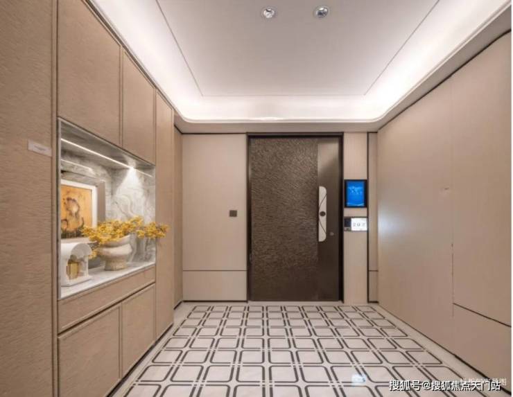 值得注意,这个梯厅面积有约8.4㎡,可塑性很强。既可当“外玄关”,用来收纳鞋类、行李箱等日常用品或不常用物件,拓展室内储物空间;也能摆放绿植、装饰画等,打造专属入户景观;细节上还预留“一支烟”的位置,让入户空间兼具实用与温度。