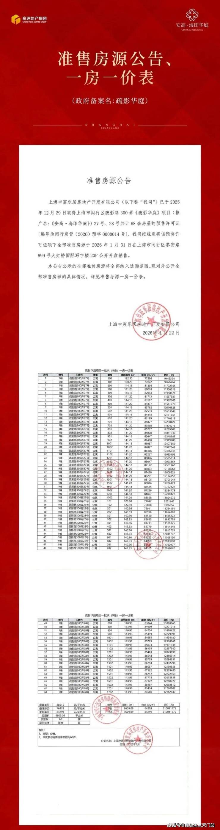 莘庄“地王”!「安高·海印华庭」在售约120-140㎡3-4房;均价84299元/㎡!