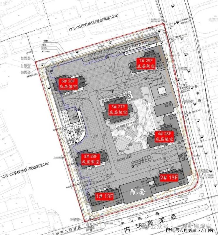 上海首个“岛屿归家”的社区: 项目总图可以看出地块方正规整、面宽资源、楼间距条件好,平面排布呈现包裹感。