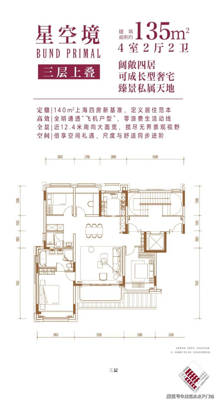 上叠(星空境):建面约135㎡,可成长型空间,适配家庭结构变化。