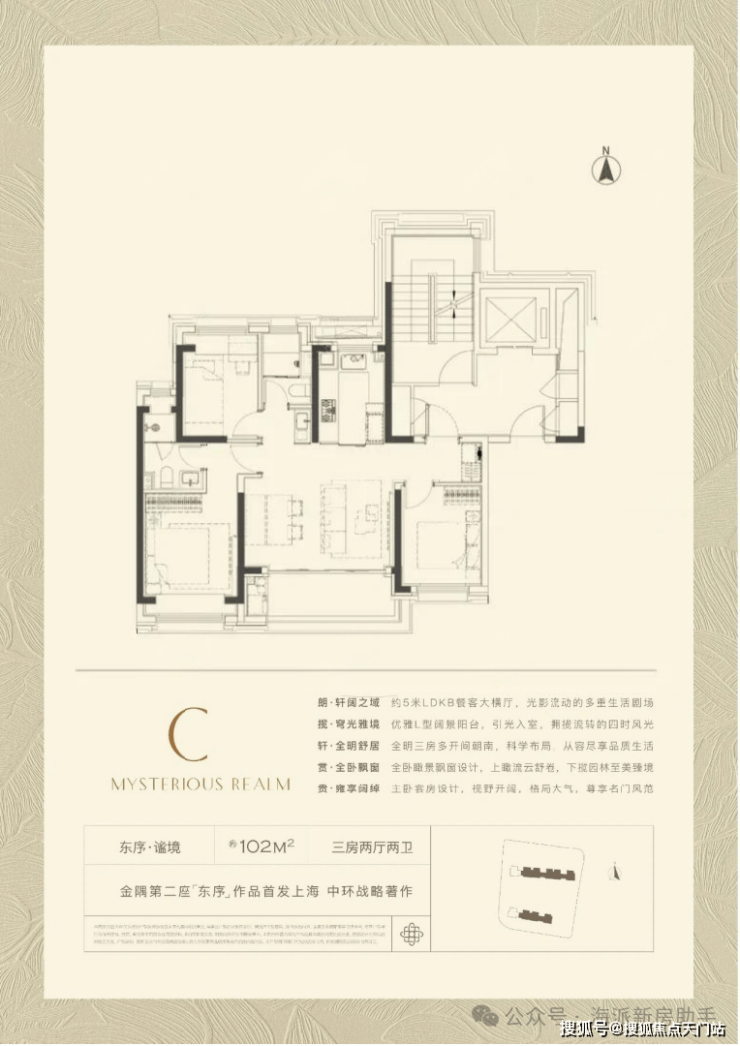产品之一是建面约 102平3房 , 3.5开间朝南 , 同面积段产品中 罕见!拥有约5米面宽的LDKB超大横厅! 奢阔尺度远超同级别产品!