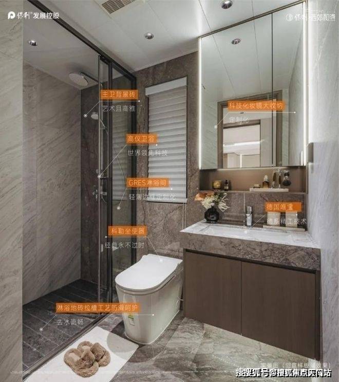 上海松江保利西郊和煦领墅售楼处电话☎:400-118-3159 (预约看房热线)卫生间浴室配备品质4件套,同时置物架/镜柜/去水槽等匠心设计,也将卫浴间的精致拉满。