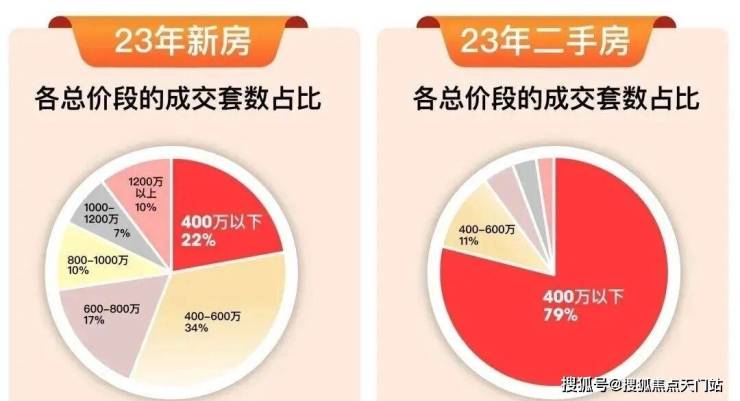 仅是2023年,总价400万以内的新房就已成交近1.2万套 ,占比约22% 。而在二手房市场,这一数据要高上7.6倍, 总价400万以内二手房成交9.16万套 ,占比约79% 。 当下,新房的性价比明显要略高于二手房,为何还会相差如此悬殊?