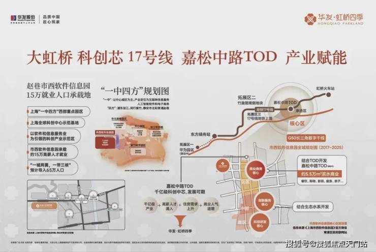 青浦区基于”一城两翼,一带三核” 发展战略目标,正着力推进东翼(赵巷商业商务区+西虹桥商务区)发展为国际一流的现代服务业集聚区。并通过17 号地铁线串联起三大核心节点,东起徐泾北斗产业基地,西到金泽华为研发基地,中部核心就是赵巷市西信息软件园。预期,未来这条产业带上,将会有65万高端人口导入