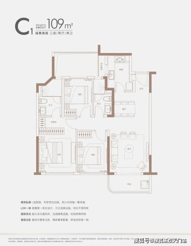 建面约140㎡四房:三开间朝南户型,南北通透,采光条件优质,客厅明亮宽敞,彰显大气布局。