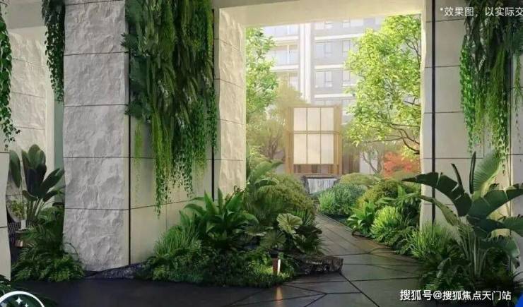 连廊绿化:以奉贤“公园城市”的理念为原点,结合街角绿化与单元门屋顶景观,创新打造立体的景观界面,使连廊成为一道绿色的风景。
