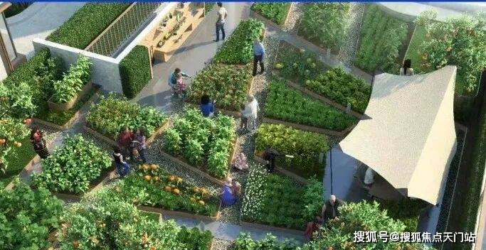 屋顶菜园:城市田园梦,人与自然的乌托邦(此处指配套用房屋顶)。一块小菜地,可以唤起人们对土地和自然的亲近感,也能让一家人在照料蔬果的时光里,创造美好、独特的共同回忆。