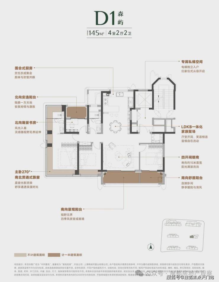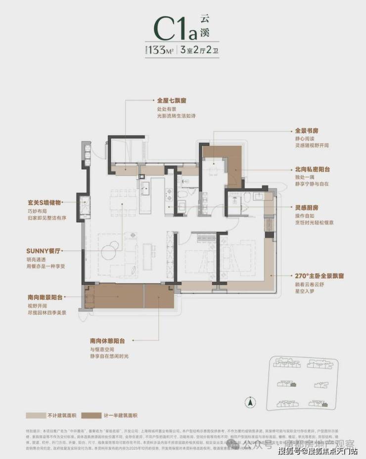 三阳台设计+主卧270°全景舱+全屋飘窗赠送,户型达到约97%的超高实得率!
