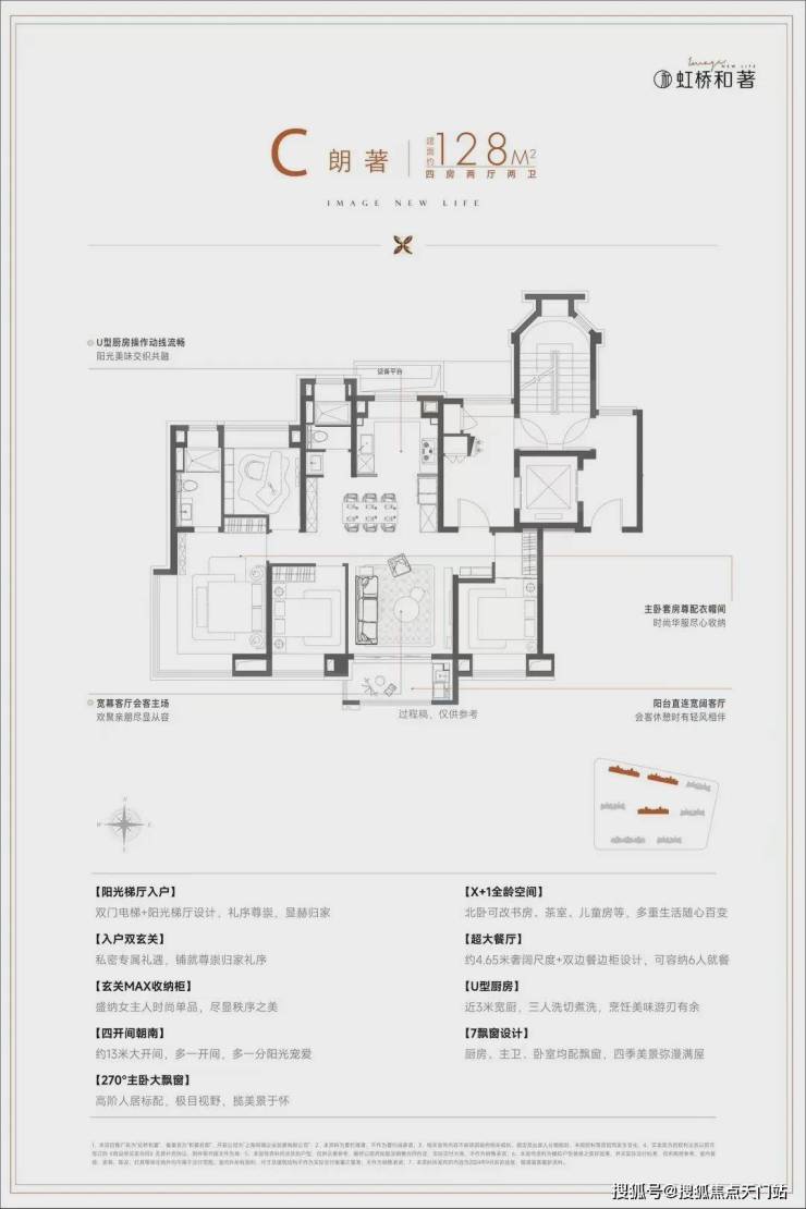 建面约128㎡四房, 无论从尺度感、稀缺性,都是市场上炙手可热的爆款产品!以四房两厅两卫的格局,将居住感与品味融合,即便用“一劳永逸”来形容,也完全不夸张。