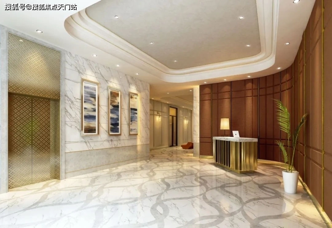 滨江一品苑的7米高入堂大厅。所有户型的厅、堂、卧室均采用落地观景窗,以保证充分采光及大面积景观视野。