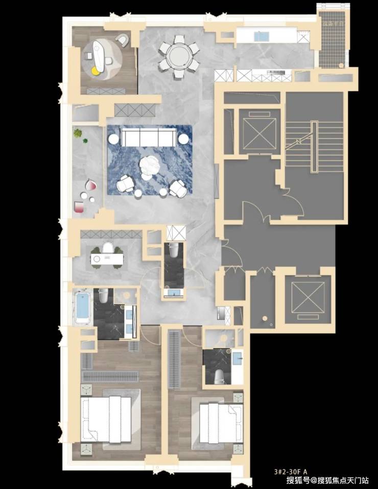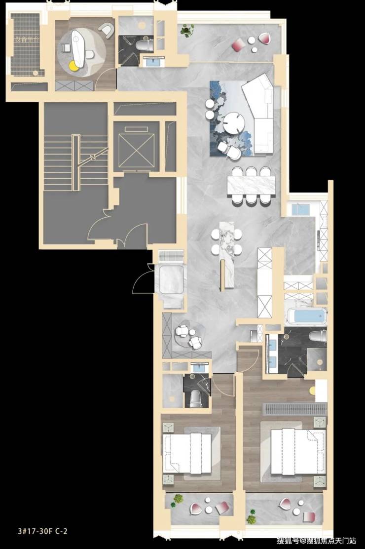 其中3#为超高层,北向可观小区绿化和苏河景观,高区可瞰三件套盛景。