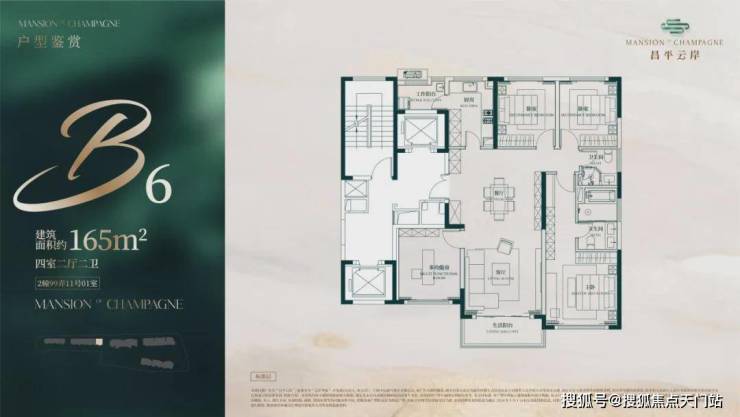此户型最靠近苏州河,特地设计了270度转角阳台直面苏河一线景观!4个套房设计,尊崇感十足!此户型仅有6套,珍藏属性拉满!