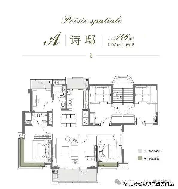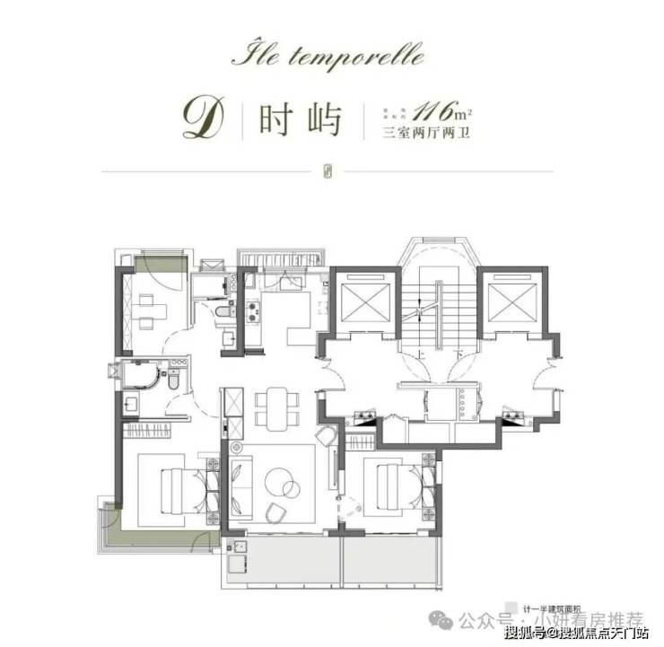 约116㎡户型南向双阳台藏着小心机,中间为非承重墙。