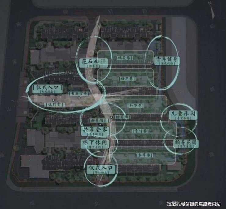 在景观的打造上,南山·璞缦汲取嘉定百年文脉人文沉淀,并以线性公园及度假式酒店为灵感,匠作 “礼序归家轴+景观漫步轴”纵横交织的双轴景观动线。