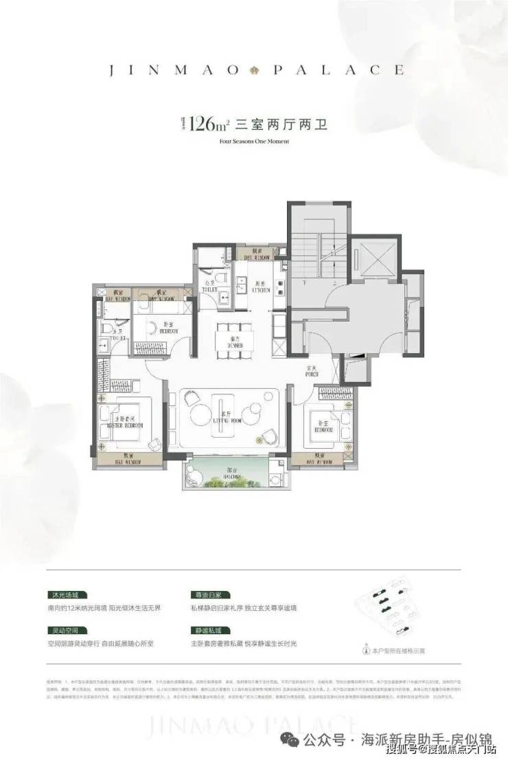 ● 建面约126㎡横厅3房:一步到位顶奢3房,全杨浦没有竞品。