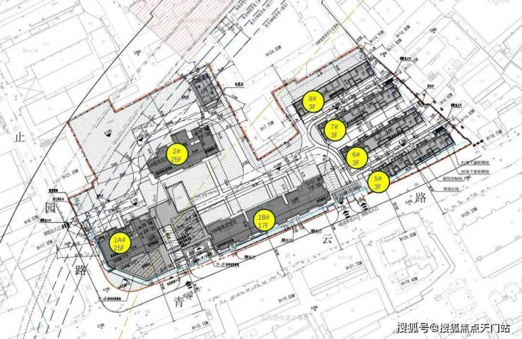 西侧为17-25层高层住宅,东侧为4栋3层联排。
