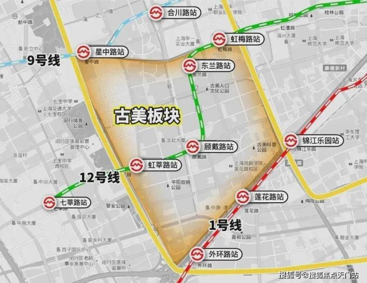 交通方面,古美坐拥双轨交,项目北有9号线星中路站,线路能级高,2站漕河泾、5站徐家汇,还能直达浦东世纪大道站。