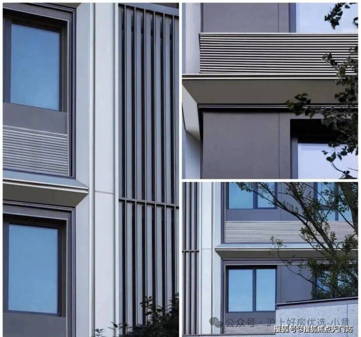 外立面设计以浅色香槟铝板线条、深色香槟铝板窗套搭配暖灰色真石漆,整体配色更具活力。