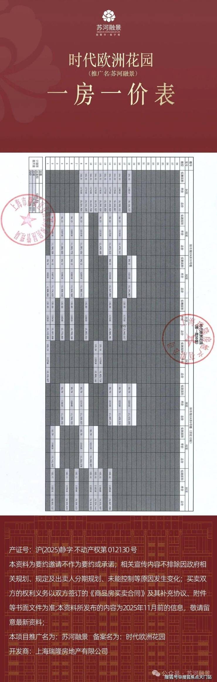 静安内环内「苏河融景」少了建面约94-164㎡1-4房;均价11.8万/m²!