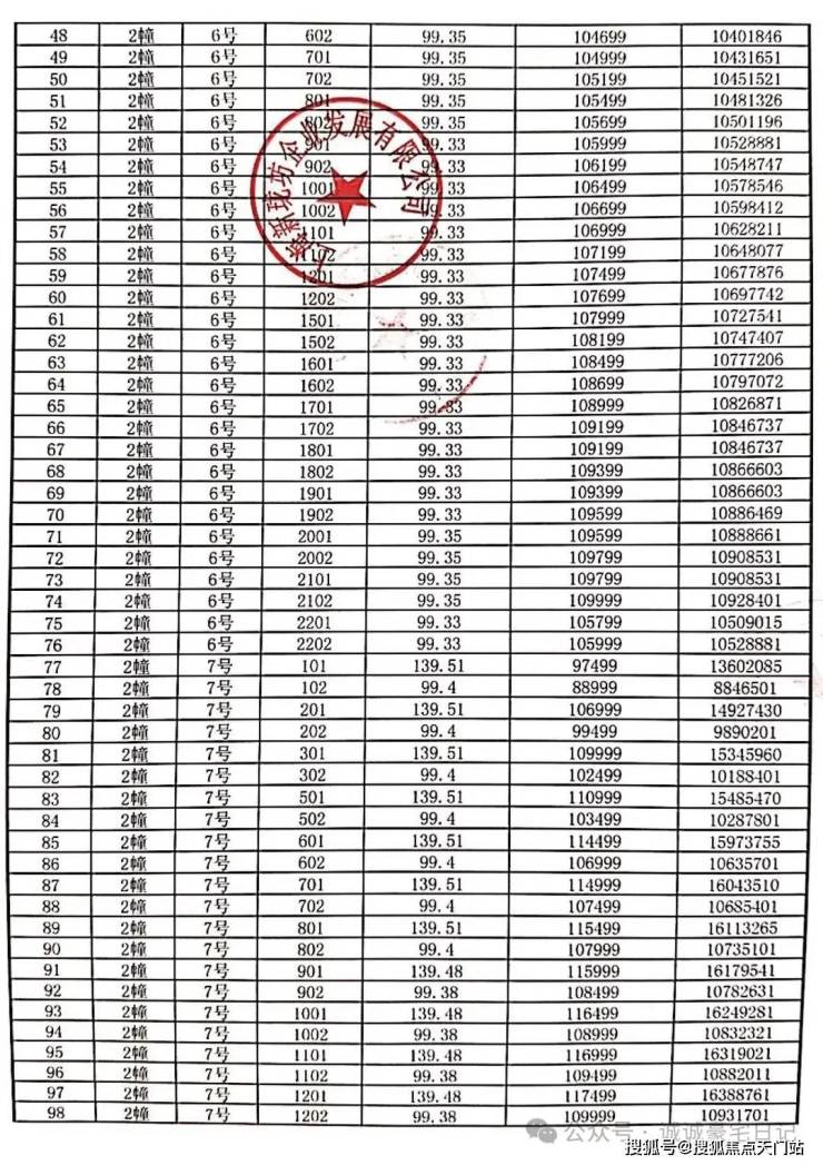 一房一价表: