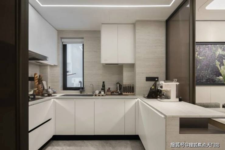 厨房外的 半开放式餐边柜同样也作为交付标准,柜体额外提供接近1立方面积的收纳空间。