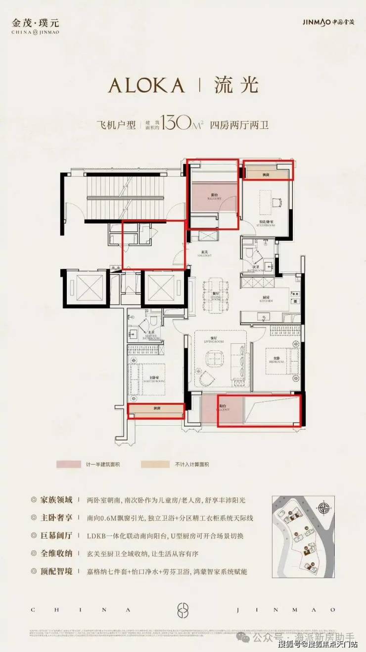 南向三房|双套房三卧室朝南,双联阳台,通透采光,多代共居各有独立私域