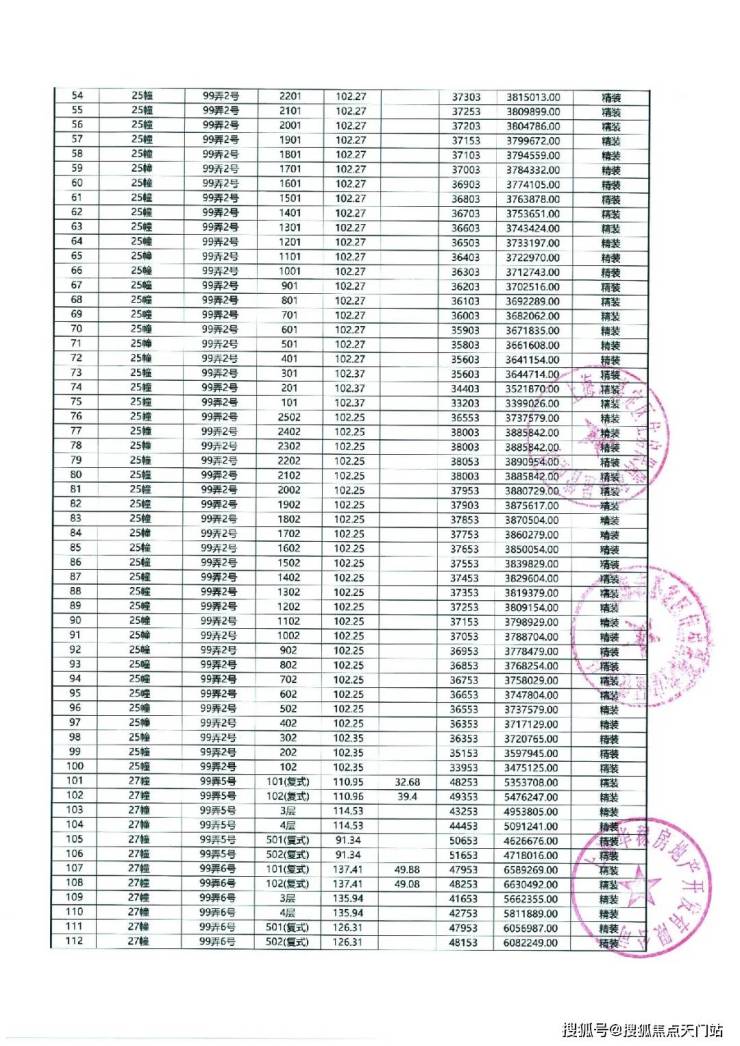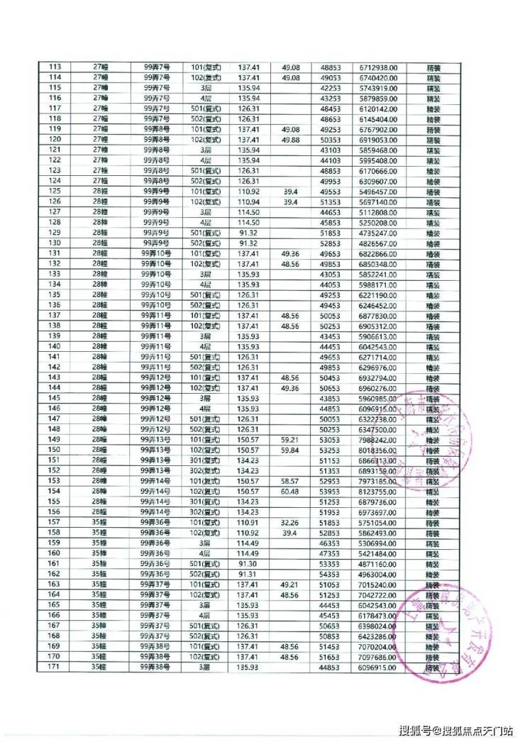 以下为项目最新一房一价表