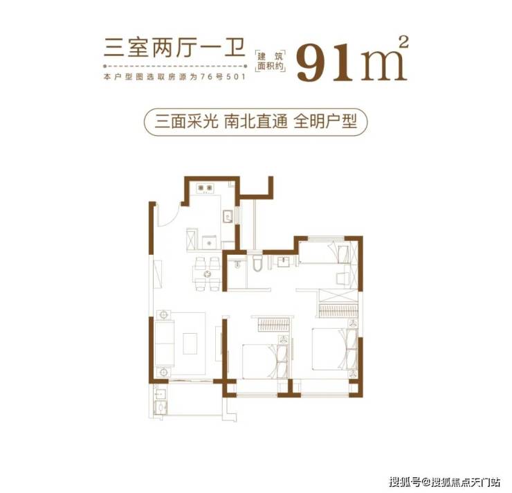 建筑面积约84-101㎡瞰景高层,方正格局,正向朝南,采光性和通风性都非常优秀;动静分离、干湿分离更是不在话下;而且推窗便能看见高尔夫绿洲,视野极为优越!