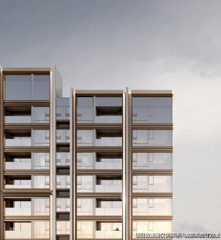 项目本次的边套设计了大量的飘窗、转角飘窗、主卧270度落地窗等设计,所以整个立面运用了大量的玻璃,构建出了非常极致的窗墙比。