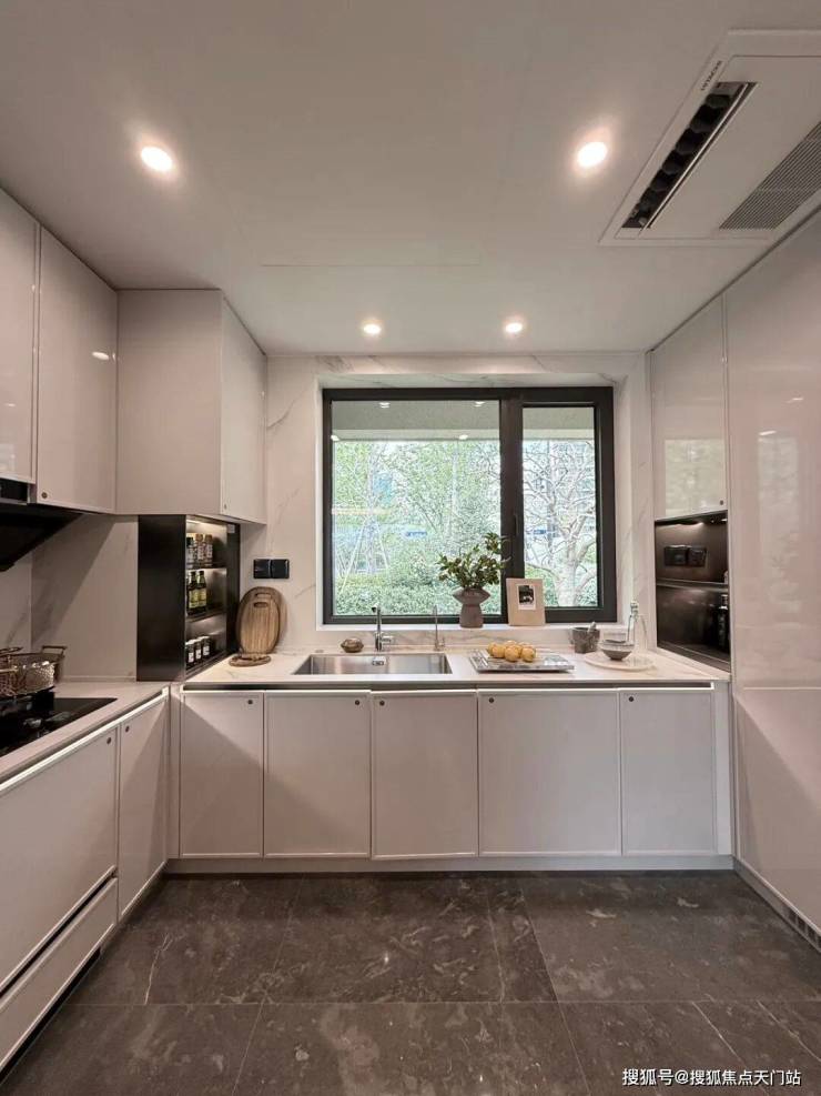 比如,厨房配了珍珠白吊柜、三组抽屉式拉篮合理搭配,调料架收纳、大容量踢脚抽、清洁用品收纳区,米面粮油、碗碟刀叉都可完美隐身。