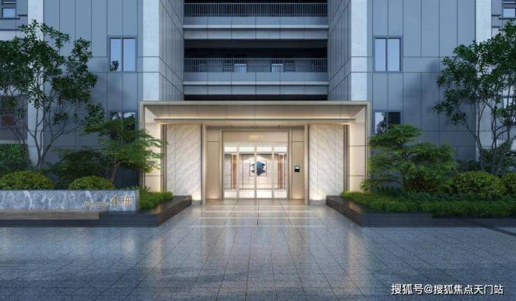 其次建筑立面美学引领,成为「板块封面」,外立面采用大面积玻璃幕墙+金色格栅塔冠,与商办双子塔一起构建靓丽天际线。