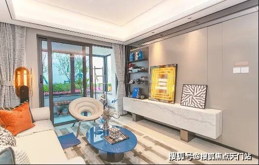 建筑面积约99㎡是备受欢迎的飞机户型 。主次卧分列客厅两侧满足“合而不扰”的家庭需求;三开间朝南+南北通透,采光和通风效果双爆棚;客餐厨一线相连,直通南向大尺度观景阳台,空间感和尺度感超乎想象!