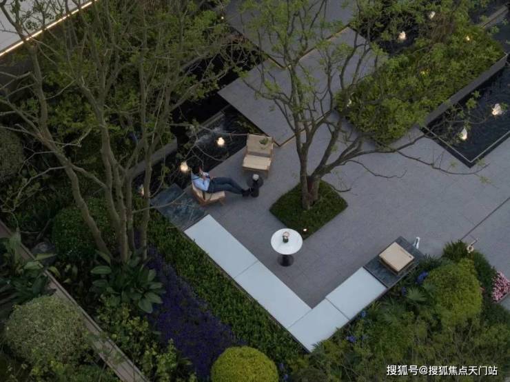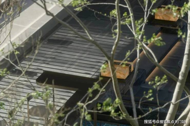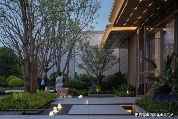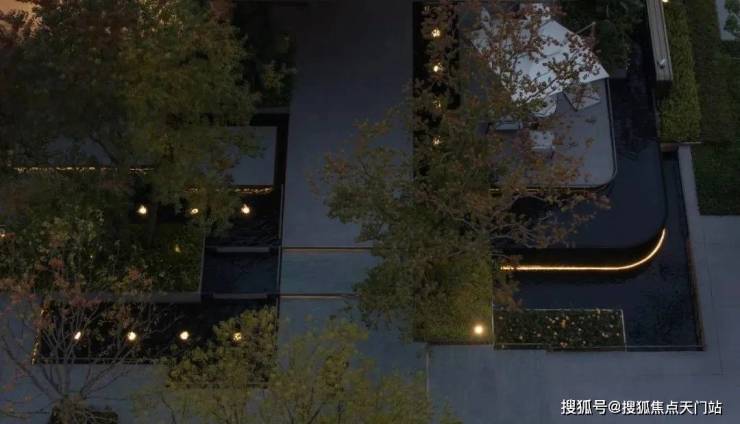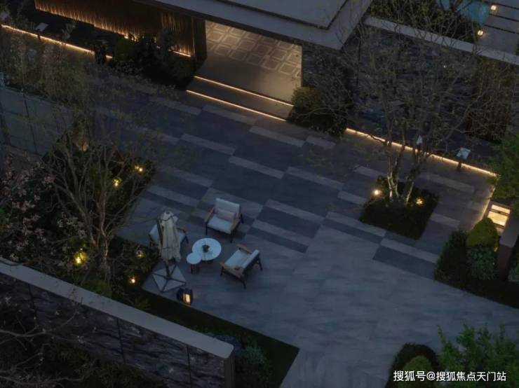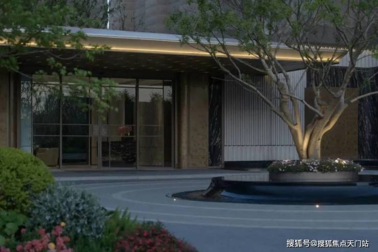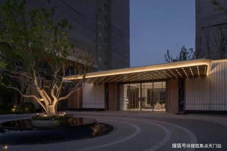 入口两边采用实体景墙与格栅形式,形成围合式院落空间,景墙前端采用奢石与金属点缀,墙面使用照壁灯有序排列,尽显奢侈度假风范。两侧阵列植物绿化,营造迎宾仪式感,凸显品质与调性。 院落内部设计采用了酒店式下落客的设计手法,中心圆形水盘聚八方之财气,寓意财源风水。圆盘水景中间选用特选造型树点缀,营造浓郁的度假氛围。配备豪华酒店式落客区的大堂设计,实现业主尊贵的归家仪式。
