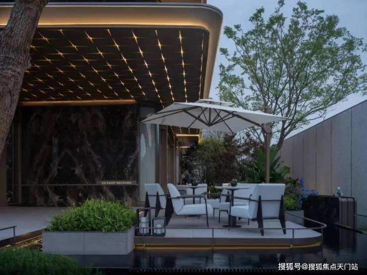 林下卡座、雕塑小品、特色灯具、叠水水景、金属护栏。。。一切精致的设计元素汇聚一堂,引领人们缓缓步入洽谈区,整个过程仿佛穿越了一个充满诗意的水岸小径,抵达了一个被自然环抱、充满花园感的洽谈花园。水面上的漂浮平台,在灯光的映照下显得格外雅致,为商务洽谈或是休闲小憩提供了一个既私密又不失自然风光的完美空间,让每一次驻足都成为难忘的体验。