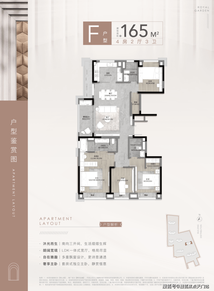 165㎡面积段户型作为改善四房的首选,南向三开间进一步扩大、LDK一体化、多重飘窗设计、双套房等等设计都为生活延展出更多生活的可能。让归家成为一种享受!
