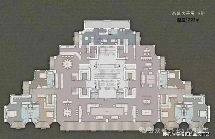 3号楼单元建筑面积:约600㎡—1220㎡住宅部分全部大平层(复式)设计.