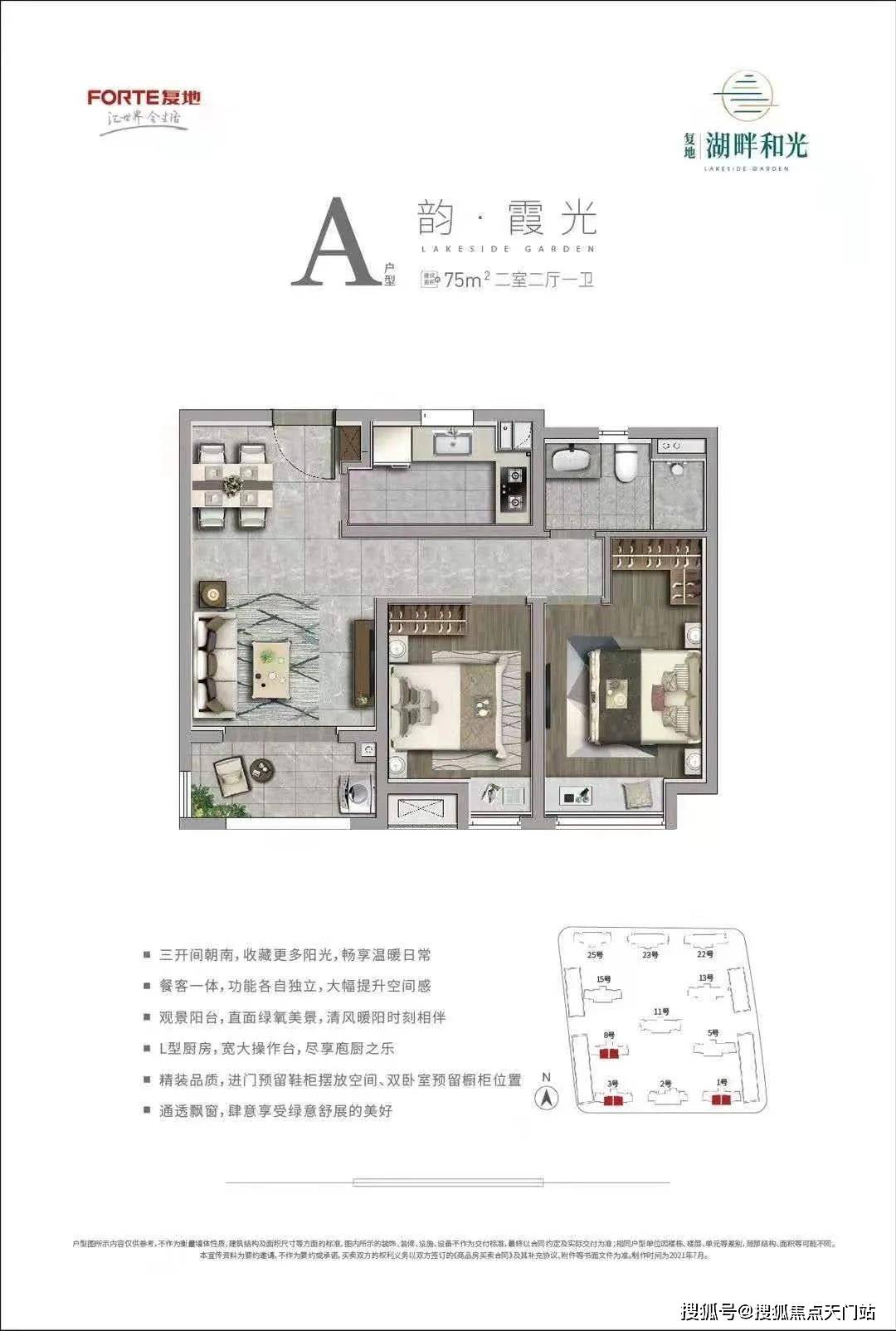 ①:建面约75㎡ (64套):两房两厅一卫