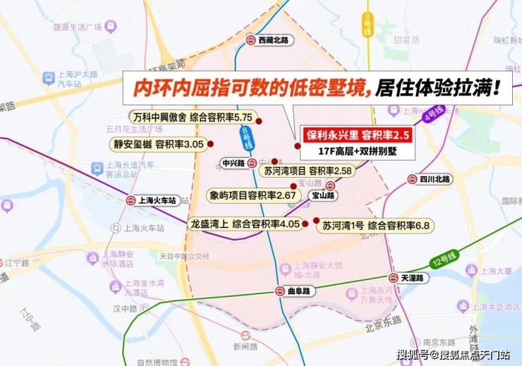 保利永兴里站位上海内环正中心,大规模城市更新+“一江一河”顶层规划+静安“一轴三带”战略+苏河湾功能区,直线约3公里浓缩一城之繁华!