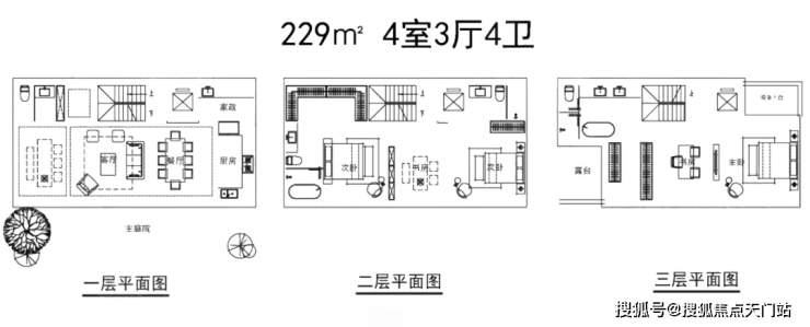 建面约179-229㎡联排,双拼