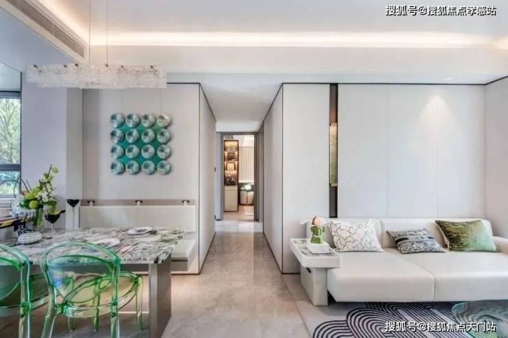 宽厅面宽约 5.5米,3.5开间面宽共约 11.5米,再加上约 8㎡的阳台,使得整个家庭的公共区域尺度感十足、功能也更加灵活多变。⛽☀︎国贸虹桥璟上售楼处电话:400-1789-208☎☎☀︎