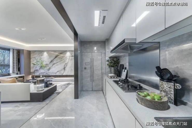 大面宽L型厨房,搭配北向生活阳台,整体尺度奢阔从容的同时,更显通透;