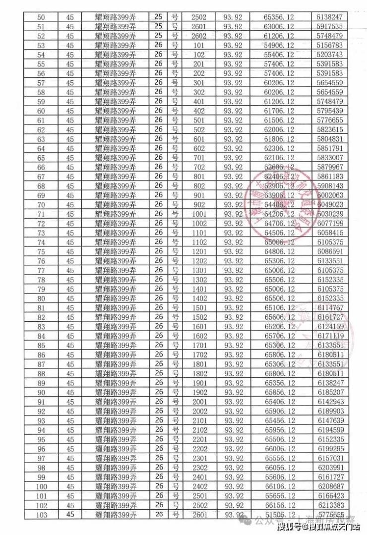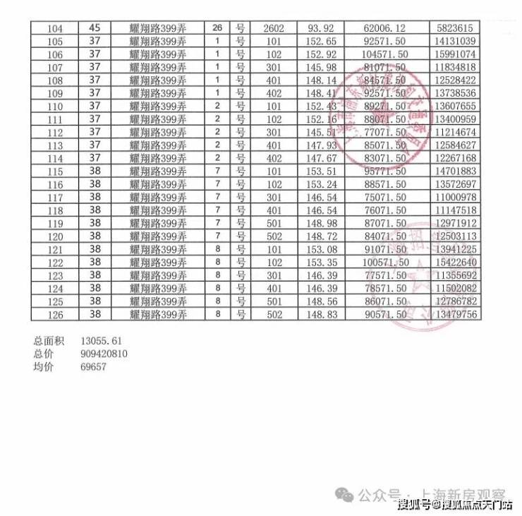 上期一房一价表如下: