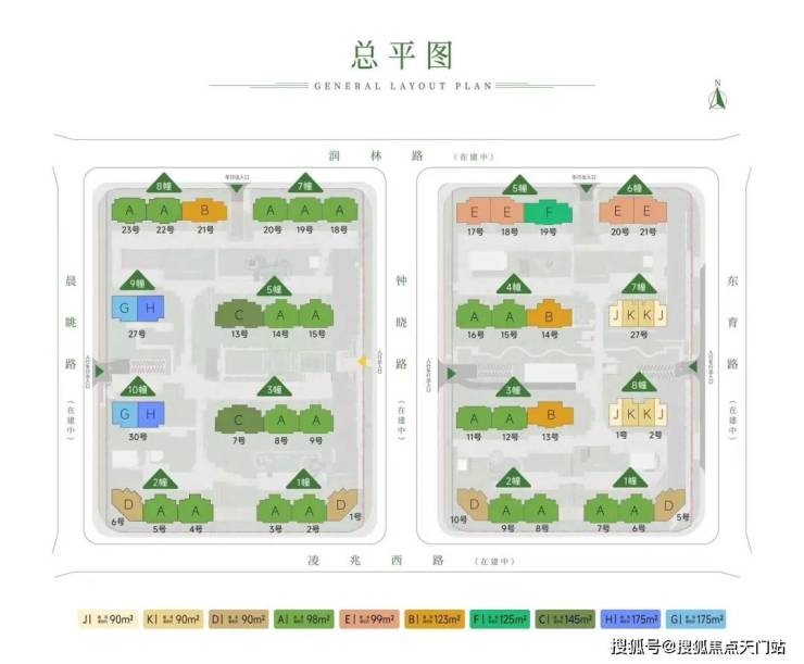 根据设计方案显示,两幅住宅地块(15号、17号) 共计建造16栋8-25层住宅楼以及相关的配套实施。规划住宅1179户。