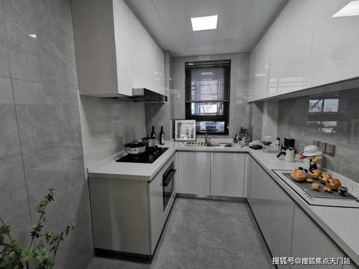 U型厨房, 操作台与厨房动线符合人体工学设计,转身之间,洗、切、烹、炒流畅便捷,与餐客厅形成一条笔直的居家生活动线; 三间卧室全附带飘窗 ,拓宽了景观视野的同时,增加了实际空间使用率; 南向主卧做了带独立卫生间的套房设计 ,仪式感和私密性更强。
